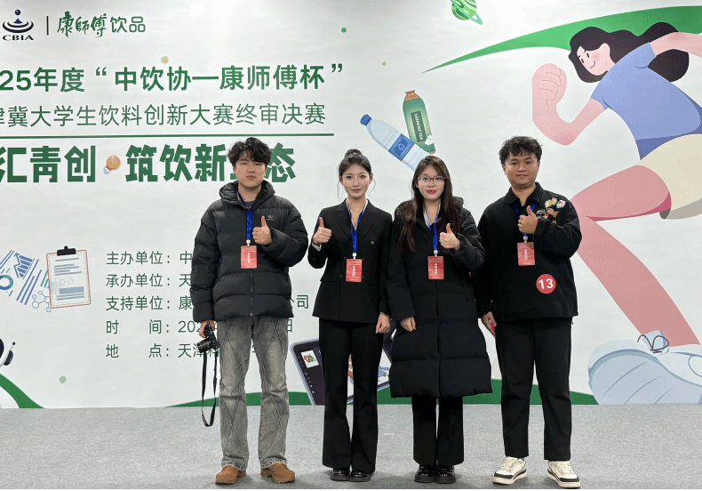 近日,2025年度“中饮协-康师傅杯”京津冀大学生饮料创新大赛终审决赛圆满落幕。我校参赛团队凭借扎实的专业功底、新颖的创意设计,在众多参赛作品中脱颖而出,斩获多项重磅奖项,充分展现了我校在食品饮料创新领域的育人成果与学子风采。